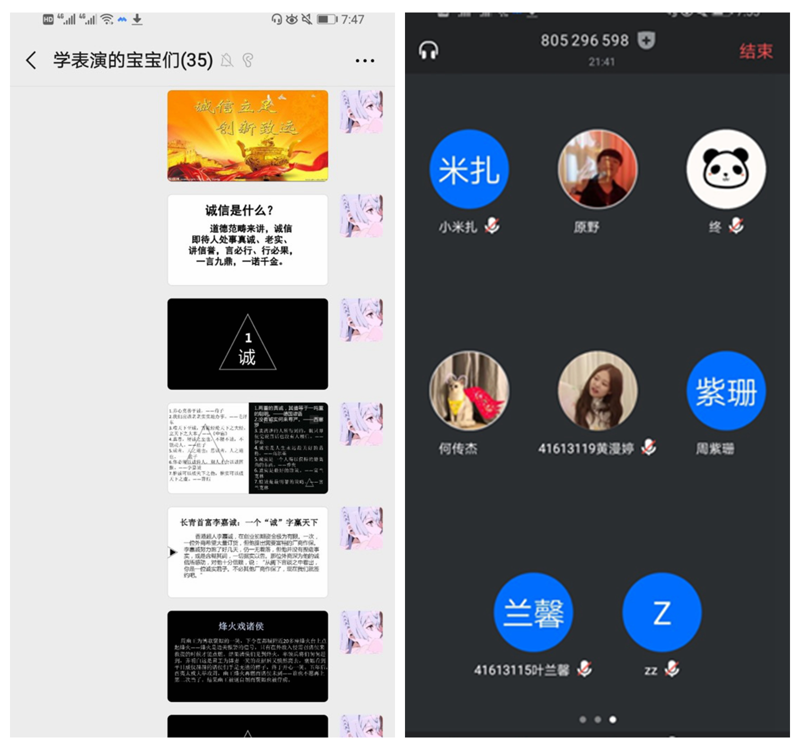为培养大学生的诚信品质,弘扬诚信文化,响应学校开展第十八届“诚信教育活动月”系列活动的号召,近日,awc777万象城娱乐官网2016级音乐表演班召开了线上诚信教育主题班会。本次班会由生活委员吕冰清主持,辅导员王丽娜及16级音乐表演班全体学生共同参与。