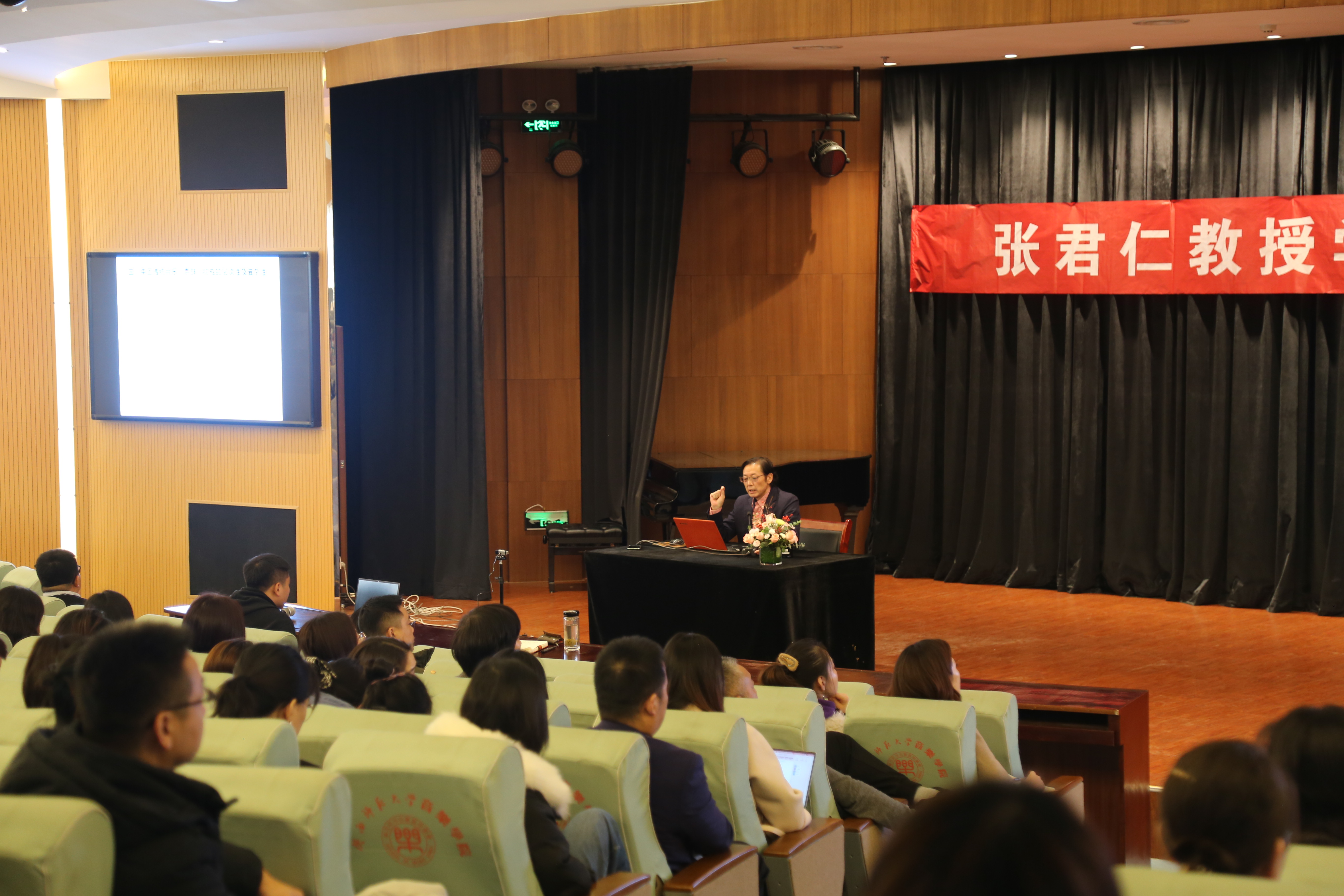 12月2日下午,初冬时节,暖阳高照,张君仁教授在六艺楼报告厅为线上线下的600余名师生带来了一场学术饕餮。张君仁教授是awc777万象城娱乐官网院长、二级教授、博士生导师,兼任教育部音乐学与舞蹈学教学指导委员会委员、中国传统音乐学会副主席、陕西省音乐家协会副主席等职。此次的学术讲座题目为“‘Sound Group’概念下丝绸之路传统音乐曲调类型的再认识——以秦声之‘苦音声腔’和‘花儿’为例”,该题目是张君仁教授在西北传统音乐领域数十年耕耘的积累与思考之所得,为丝绸之路音乐研究提供了一种非常适用的旋律分析方法以及区域传统音乐关联性研究的崭新范式,具有强烈的时代意义与极高的学术价值。