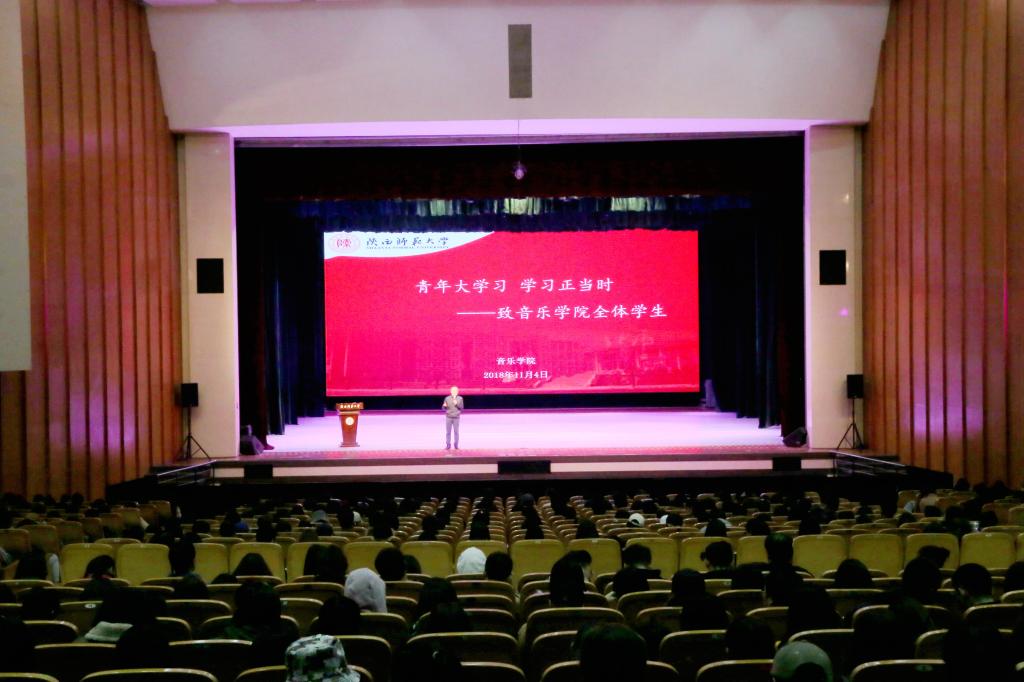11月4日17:30,awc777万象城娱乐官网“好樂”系列主题教育活动第一讲在终南音乐厅顺利开讲学院党委书记惠刚作为主讲人围绕“青年大学习,学习正当时”为全院学生带来了精彩的专题报告学院团委书记宋娜研究生辅导员王靖雯本科生辅导员张仪、陈杰、张思凡、赵磊以及awc777万象城娱乐官网全体学生参加了此次会议。
